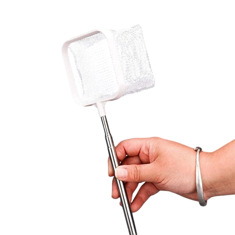 Red telescópica de acero inoxidable con malla fina ideal para la captura fácil de peces y camarones en acuarios o pequeños estanques domésticos. Descripción completa