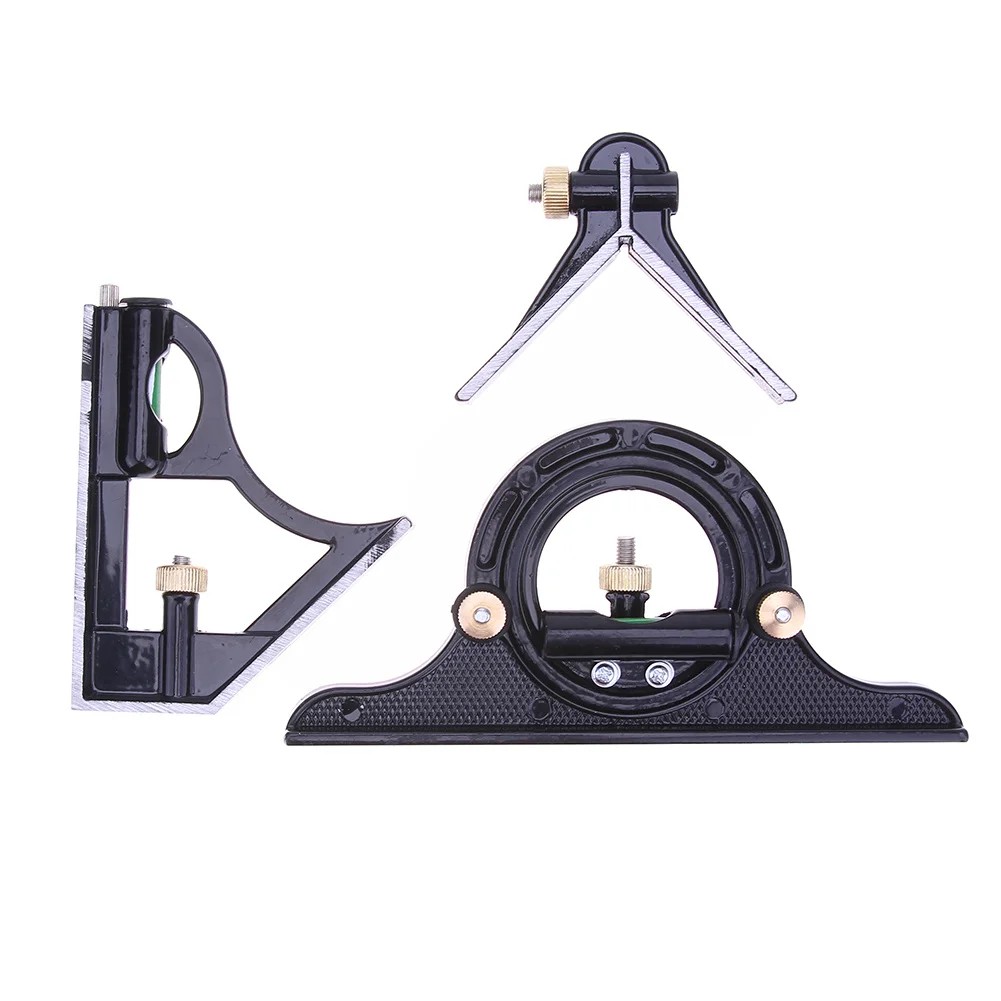 Regla combinada ajustable 300 mm Transportador 45° y 90° Medición central Aguja de trazado Nivel de burbuja