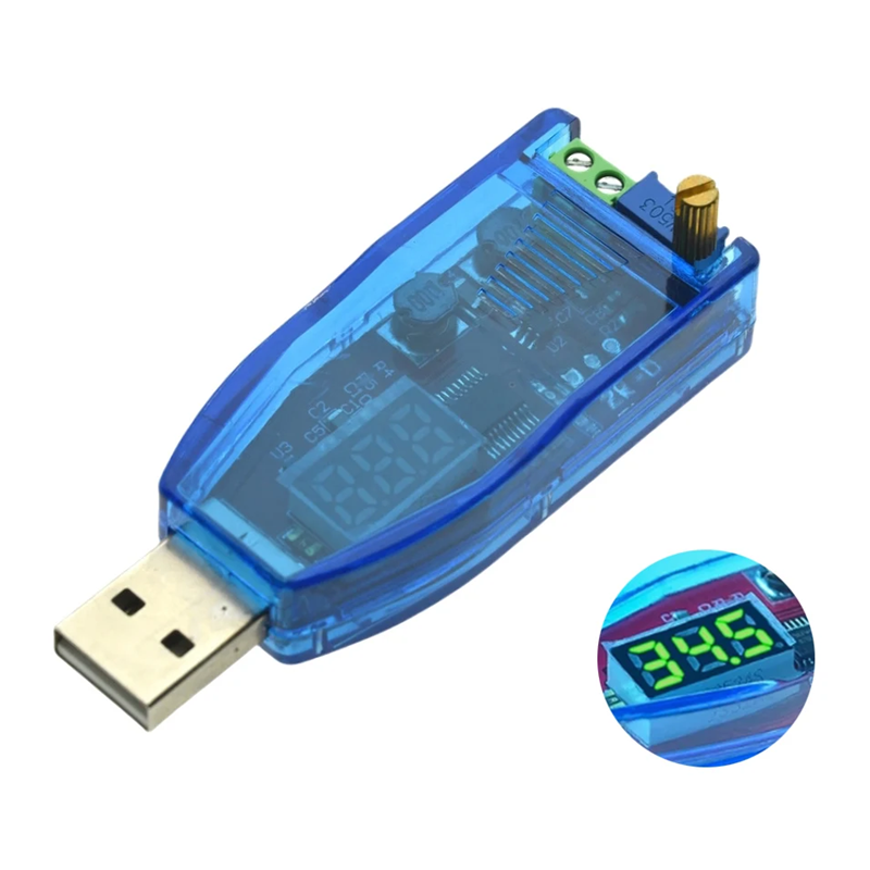 Regulador de voltaje compacto con entrada USB y amplio rango de salida de 1–24V, ideal para alimentar pequeños dispositivos electrónicos y proyectos de bricolaje. Descripción completa