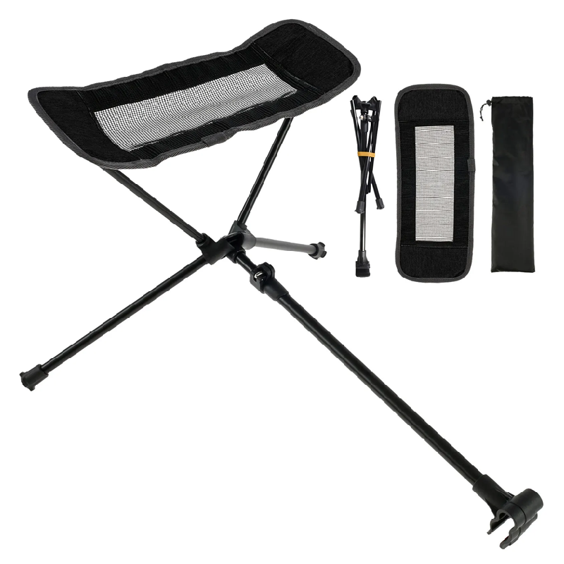 El diseño plegable es una gran ventaja al viajar. Una vez plegado, tiene dimensiones compactas de 55 x 12 cm, por lo que se puede guardar fácilmente en una bolsa de viaje. Su construcción robusta y duradera proporciona un soporte estable y garantiza una larga vida útil incluso con un uso frecuente. El reposapiés es adecuado para actividades al aire libre, picnics, festivales, excursiones de pesca y descanso habitual en el jardín.