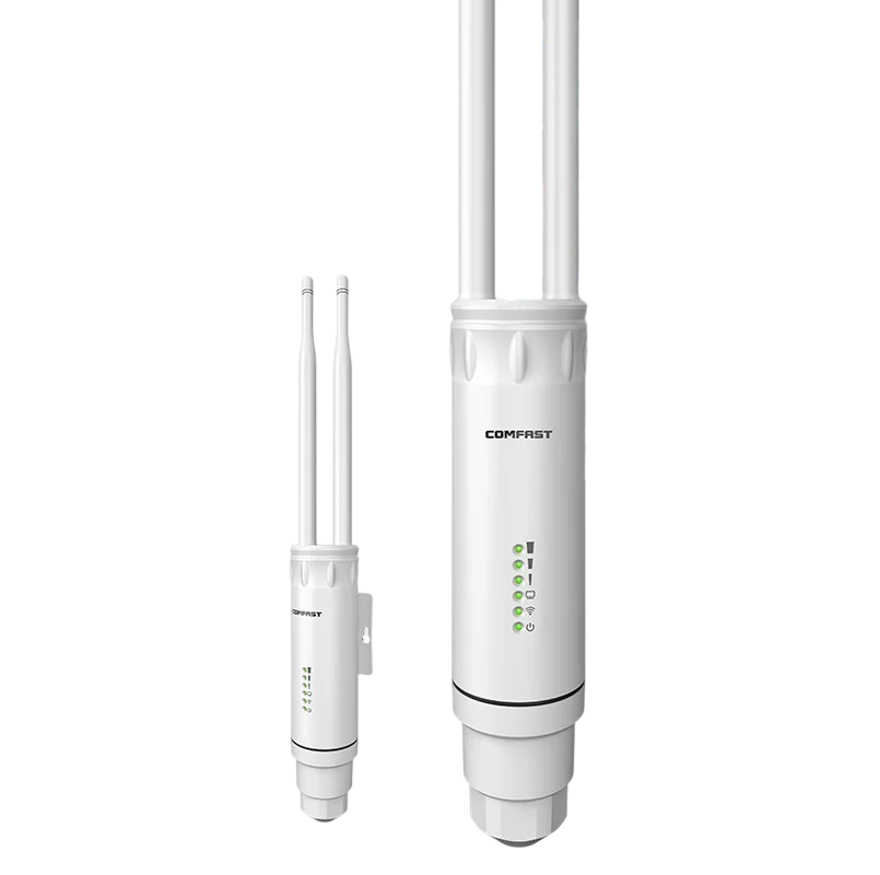 Este punto de acceso WiFi exterior está diseñado para crear una conexión inalámbrica en espacios abiertos más grandes. El dispositivo puede funcionar como una estación base para cubrir áreas exteriores, como en los alrededores de casas, en granjas, en aldeas o en otros lugares remotos. Gracias a su construcción, es adecuado para la instalación en entornos donde se necesita una red inalámbrica estable fuera de los edificios.
