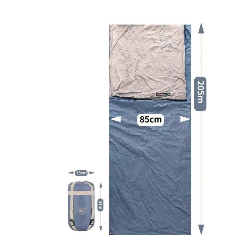 Saco de dormir 205 x 85 cm Azul con algodón y nailon, destinado para temperaturas de 8-15°C, embalaje compacto 31 x 13 cm