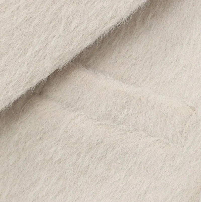 Saco de mujer de felpa beige con cuello y bolsillos Abrigo suave y elegante de poliéster Ropa de otoño e invierno de un solo color