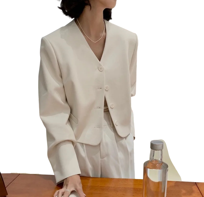 • Saco elegante de mujer con escote en V – diseño atemporal adecuado para cualquier ocasión.