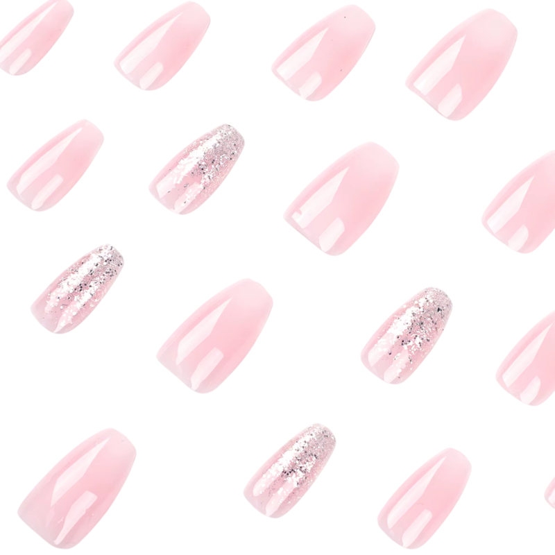Este set de uñas artificiales es la elección ideal para mujeres que desean combinar una elegancia discreta con un ligero efecto festivo. El brillo sutil proporciona a las uñas un acabado delicado que no resulta exagerado y es adecuado incluso para el uso diario. La forma coffin es un clásico moderno y, junto con la longitud media, crea un aspecto equilibrado que es cómodo y práctico. El acabado acrílico ofrece una superficie realista y una agradable ligereza al llevarlas. Gracias a la amplia variedad de tamaños, la adaptación es fácil y rápida.