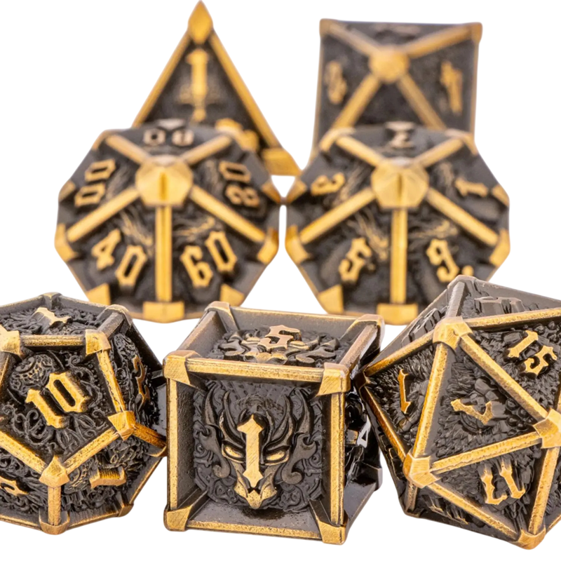 Gracias a su apariencia de fantasía oscura, el conjunto es especialmente adecuado para mundos de juego con una atmósfera más sombría. Los dados se pueden combinar fácilmente con otros accesorios de juego y, gracias a su tamaño compacto, se pueden almacenar y transportar cómodamente.