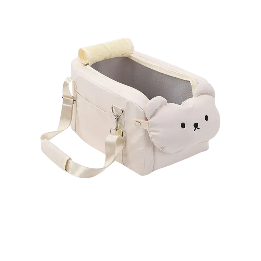 Silla de auto segura y cómoda para perros y gatos de dimensiones 43 x 25 x 22,5 cm. Con diseño adorable y cinturones de seguridad para un transporte cómodo. Descripción completa