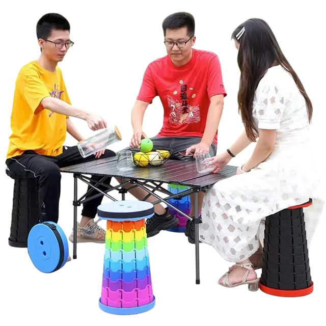 Silla telescópica plegable de plástico altura hasta 45 cm 25 x 6 cm Taburete portátil ajustable con asa Silla de camping resistente