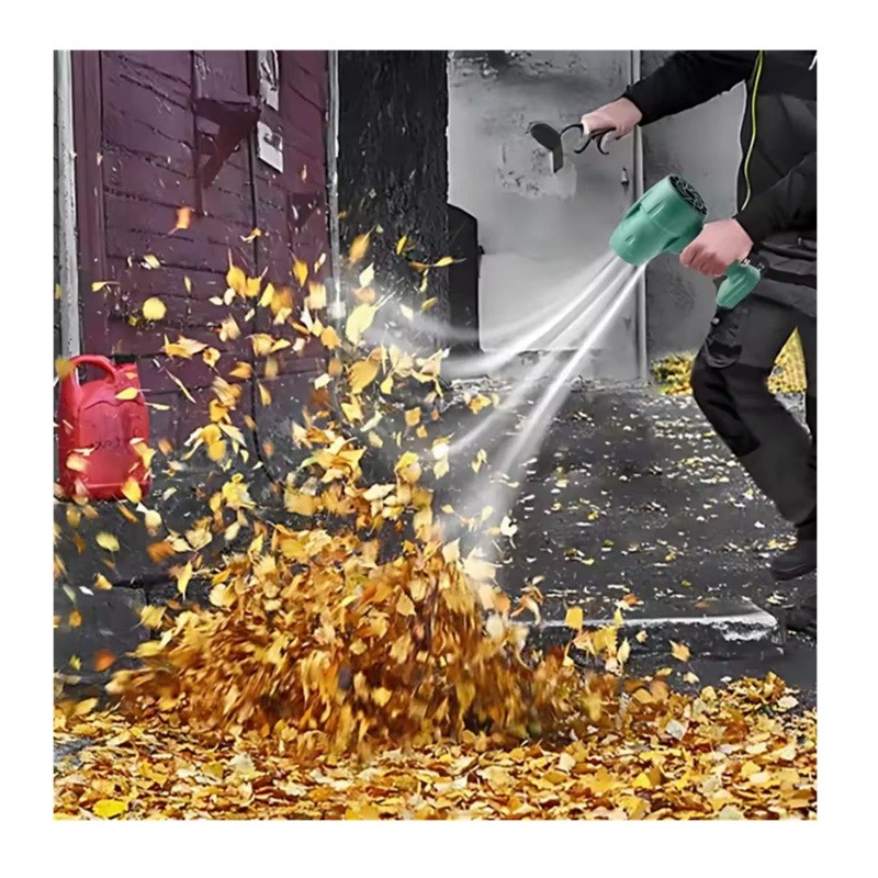 El ventilador turbo a batería compacto está diseñado para trabajar con un flujo de aire al limpiar polvo o soplar suciedad de diversas superficies. Gracias a sus pequeñas dimensiones y alimentación a batería, se puede utilizar sin conexión a la red eléctrica. El dispositivo utiliza un motor sin escobillas de alta velocidad y una batería Li-ion con capacidad de 3000 mAh.