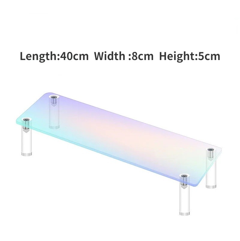 El soporte acrílico de un nivel ofrece una forma simple y clara de exhibir y organizar pequeños objetos. Gracias a la superficie alargada, proporciona suficiente espacio para colocar más piezas una al lado de la otra. Es adecuado para figuras, perfumes, joyas y otros objetos de colección.