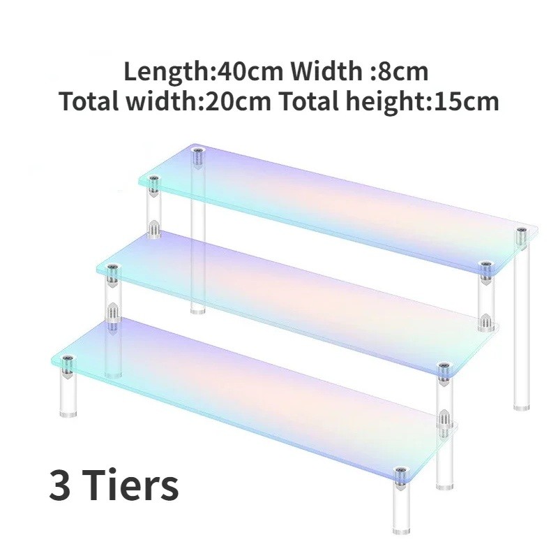 Soporte acrílico 3 niveles 40 × 8 × 15 × 20 cm organizador rosa para figuras perfumes joyas estante de exhibición para objetos de colección