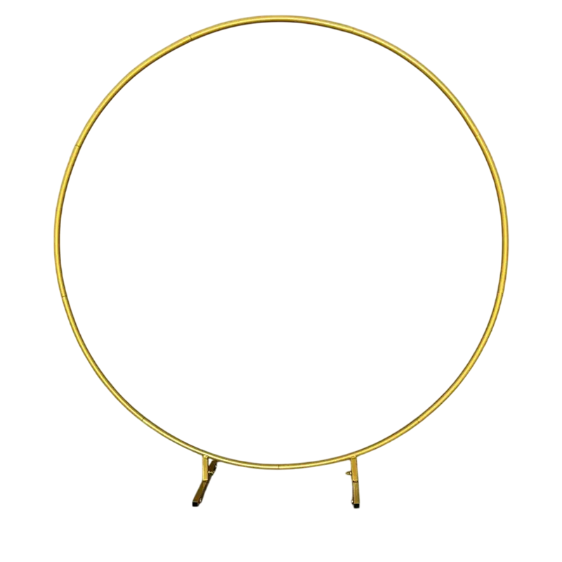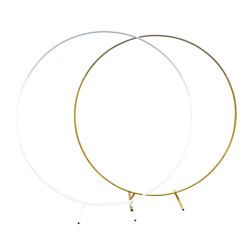 Elegante soporte circular de metal en color blanco o dorado, ideal para decorar con globos, flores o telas en bodas, celebraciones y fiestas. Descripción completa