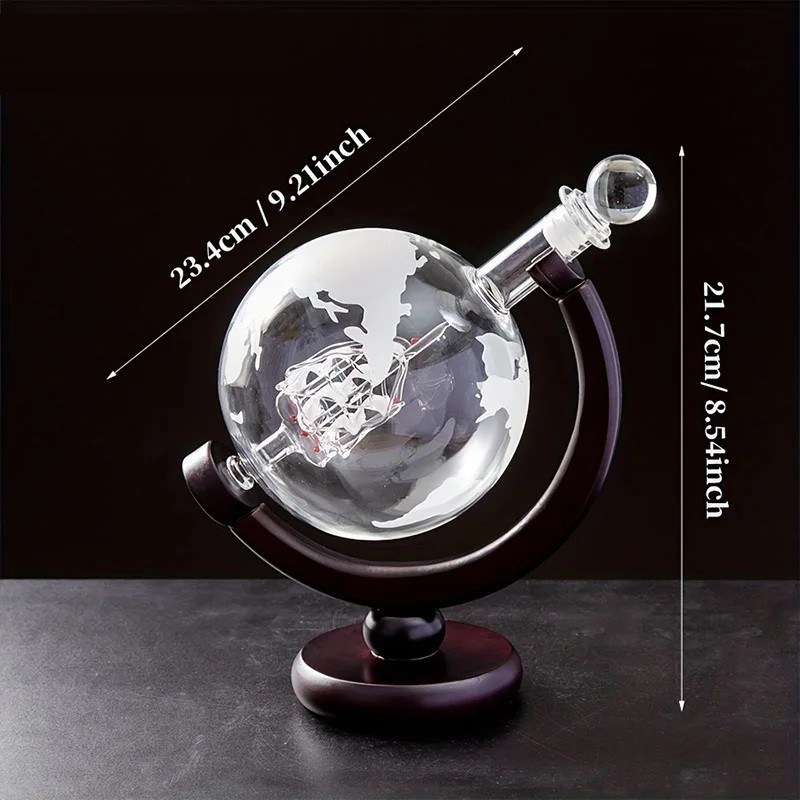 Decantador de vidrio permite un almacenamiento claro del whisky y resalta su color y pureza. Es ideal para disfrutar de la bebida. Soporte de madera garantiza la estabilidad y el almacenamiento seguro de todas las partes. Dimensiones 27 x 23.4 cm permiten una colocación práctica y compacta.