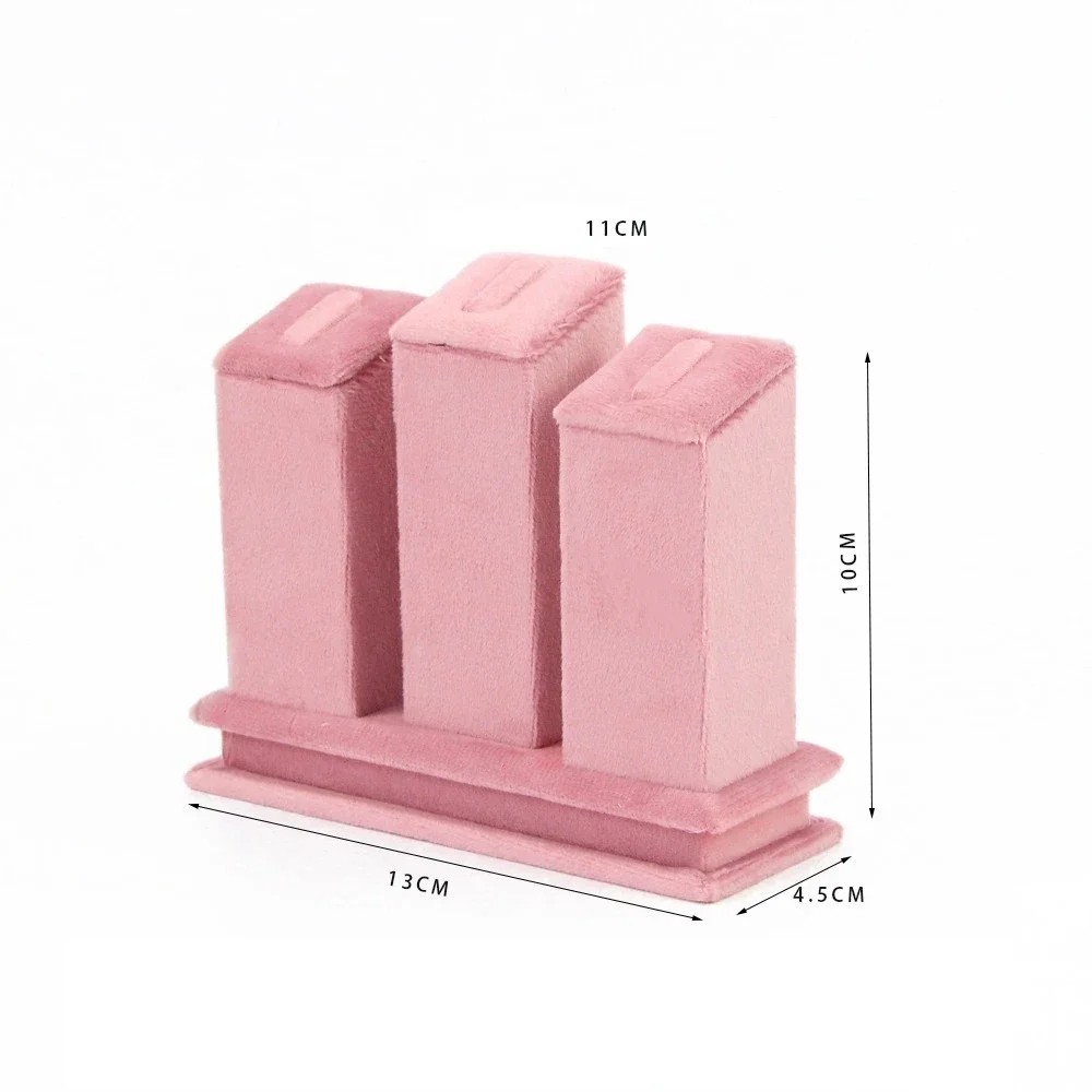 Soporte de terciopelo para anillos 3 en 1 terciopelo rosa 13 × 10 × 4,5 cm soporte de exhibición para joyas soporte para anillos