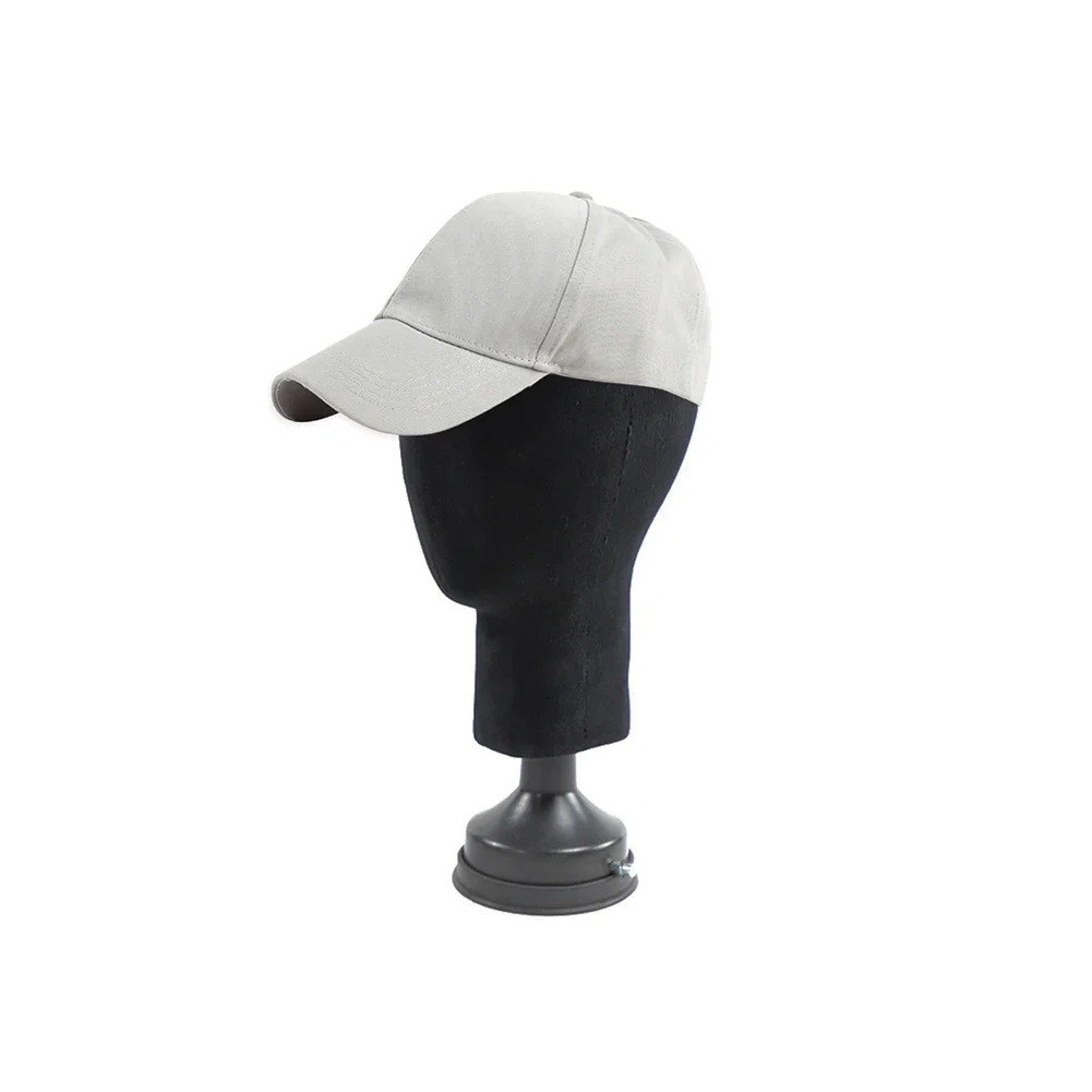 Práctico soporte para pelucas, gorras y sombreros con base. Altura 26 cm, circunferencia de cabeza 50 cm, ideal para uso en salones de peluquería o en casa. Descripción completa