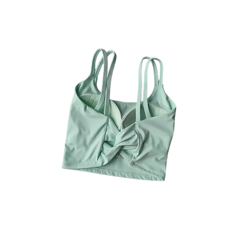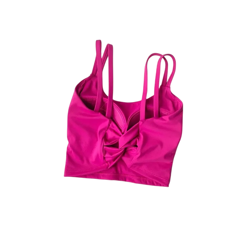 Sostén deportivo para mujer con fruncido en la parte delantera y tirantes delgados de nylon para fitness, correr, hacer ejercicio y entrenar