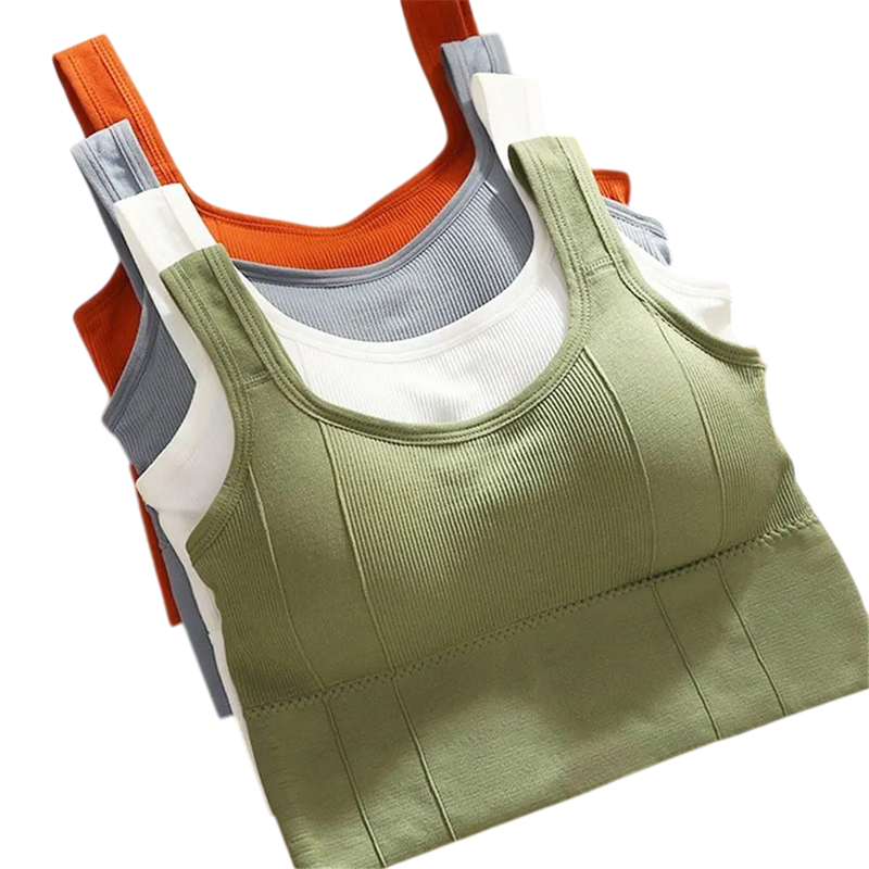 Sostén deportivo para mujer con tirantes anchos y diseño acanalado tamaño universal algodón para fitness ejercicio y uso diario