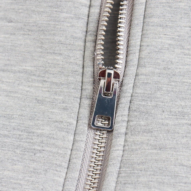 Estilosa sudadera gris con capucha y cremallera de suave algodón, ideal para el ocio, viajes y uso diario con un diseño moderno. Descripción completa