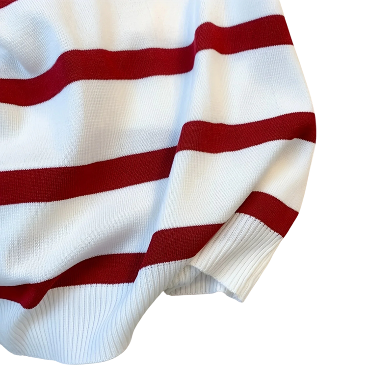 Este top para mujer representa el equilibrio perfecto entre elegancia y casualidad. El diseño de rayas crea un aspecto fresco y moderno que nunca pasará de moda. El material de poliéster asegura una alta comodidad y un fácil mantenimiento, lo que apreciarás en el uso diario. El cuello añade un carácter original y permite combinaciones tanto con elementos deportivos como elegantes. El corte crop resalta las curvas femeninas y, combinado con la talla universal, asegura que el suéter se adapte cómodamente a tu figura. Este modelo es la elección ideal para mujeres que buscan estilo, comodidad y originalidad en uno.