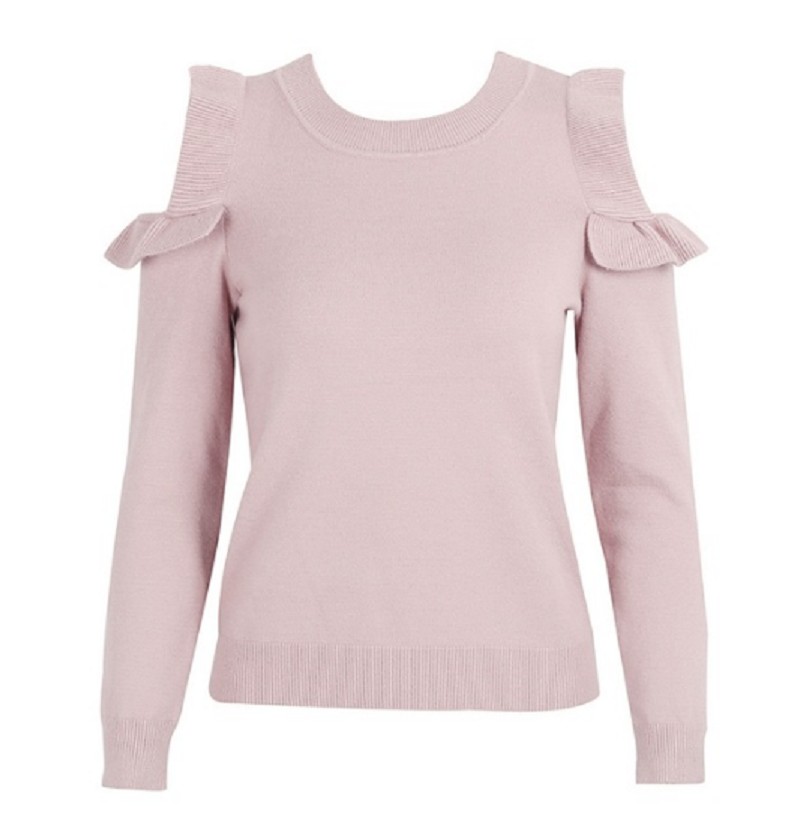 Suéter de mujer con aberturas con volantes en los hombros J2449
