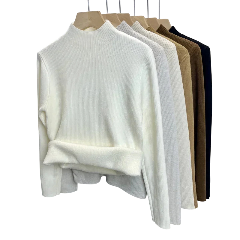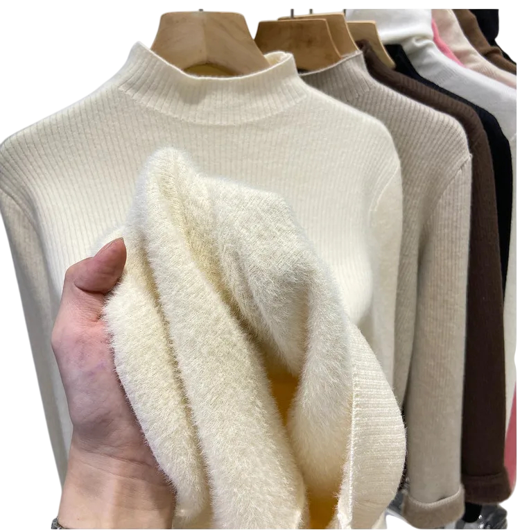1× suéter de mujer con cuello alto y forro de felpa