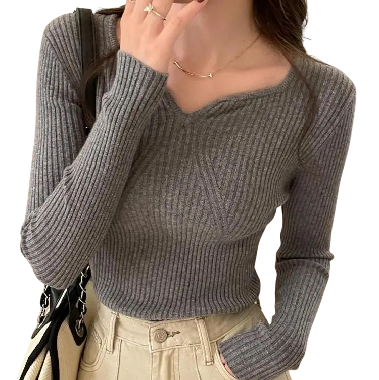 Elegante suéter de mujer con escote en V y mangas largas. Material suave y transpirable de algodón y poliéster, ideal para cualquier ocasión. Descripción completa