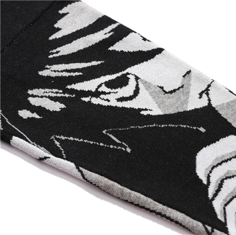 Este suéter para hombre en estilo japonés es no solo una prenda de moda, sino también un elemento distintivo de tu guardarropa. La combinación del color negro y el estampado original crea un aspecto único que apreciará cualquier fanático del anime. El diseño de punto y el material de poliéster de calidad aseguran larga vida útil y comodidad en el uso diario. Si buscas un suéter que pueda expresar tu personalidad, conectar tu pasión por el anime con el moderno estilo de streetwear y mantenerte abrigado, este modelo es la elección correcta. Gracias a su diseño versátil, se adapta a jeans, pantalones y outfits más sueltos, lo que lo convierte en un complemento de moda perfecto para cualquier ocasión.