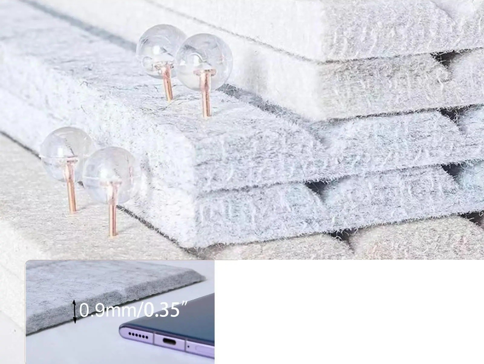 La superficie está hecha de material de fieltro, en el que se pueden insertar fácilmente chinchetas para fijar papeles o fotografías. La construcción está diseñada para ser suficientemente fuerte y resistente, lo que ayuda a proteger la pared de daños al usar alfileres.