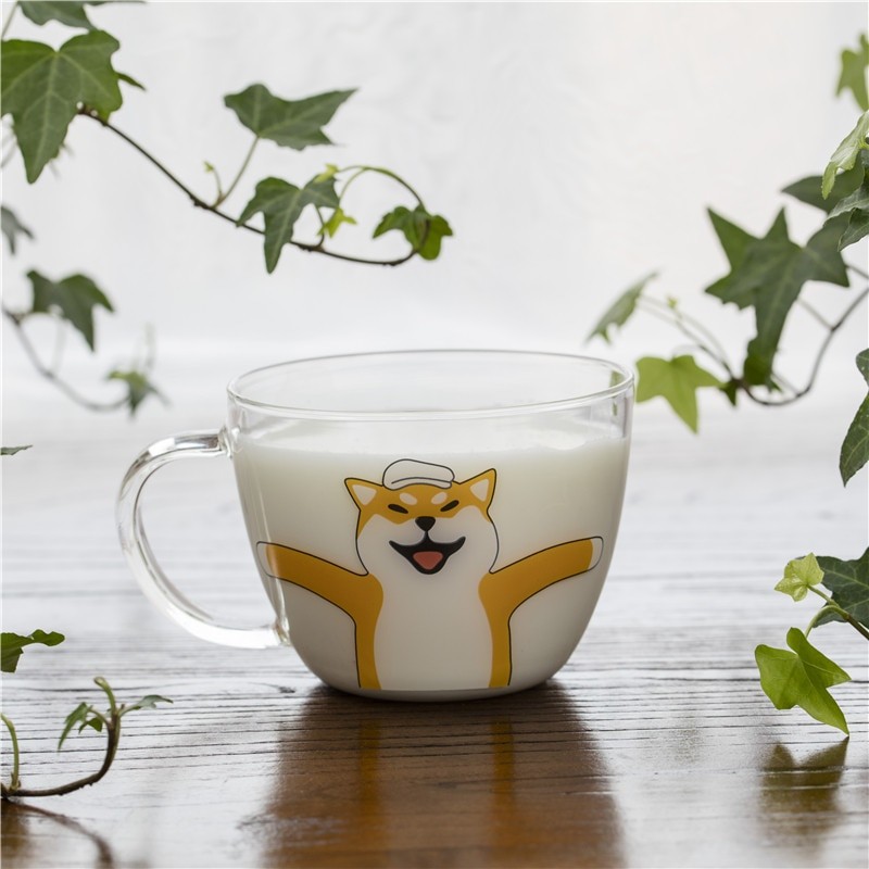 Taza de cristal con forma de gato y perro