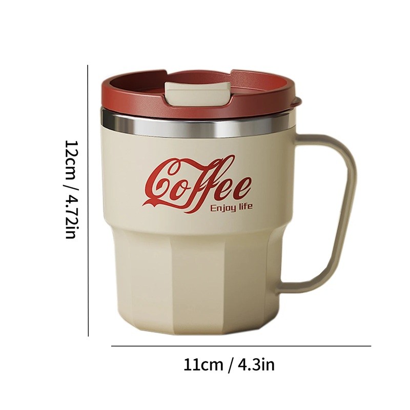 Taza térmica de 400 ml con tapa deslizante y doble pared de acero inoxidable. Forma práctica con asa adecuada para el uso diario y los viajes. Descripción completa