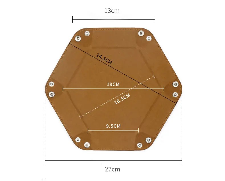 Tazón hexagonal desplegable para dados 27 x 24,5 cm Cuero sintético Tazón de juego de almacenamiento para juegos de mesa y RPG