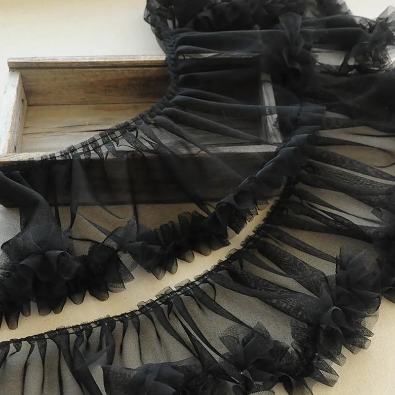 La tela de volantes esponjosa es un elemento textil decorativo adecuado para coser prendas, adornar accesorios de moda y crear diversas decoraciones. Gracias a su estructura de volantes pronunciada, la tela tiene un aspecto muy elegante y aporta a los productos un delicado toque romántico. Este tipo de decoración textil es especialmente popular en la creación de vestidos, faldas o accesorios decorativos.