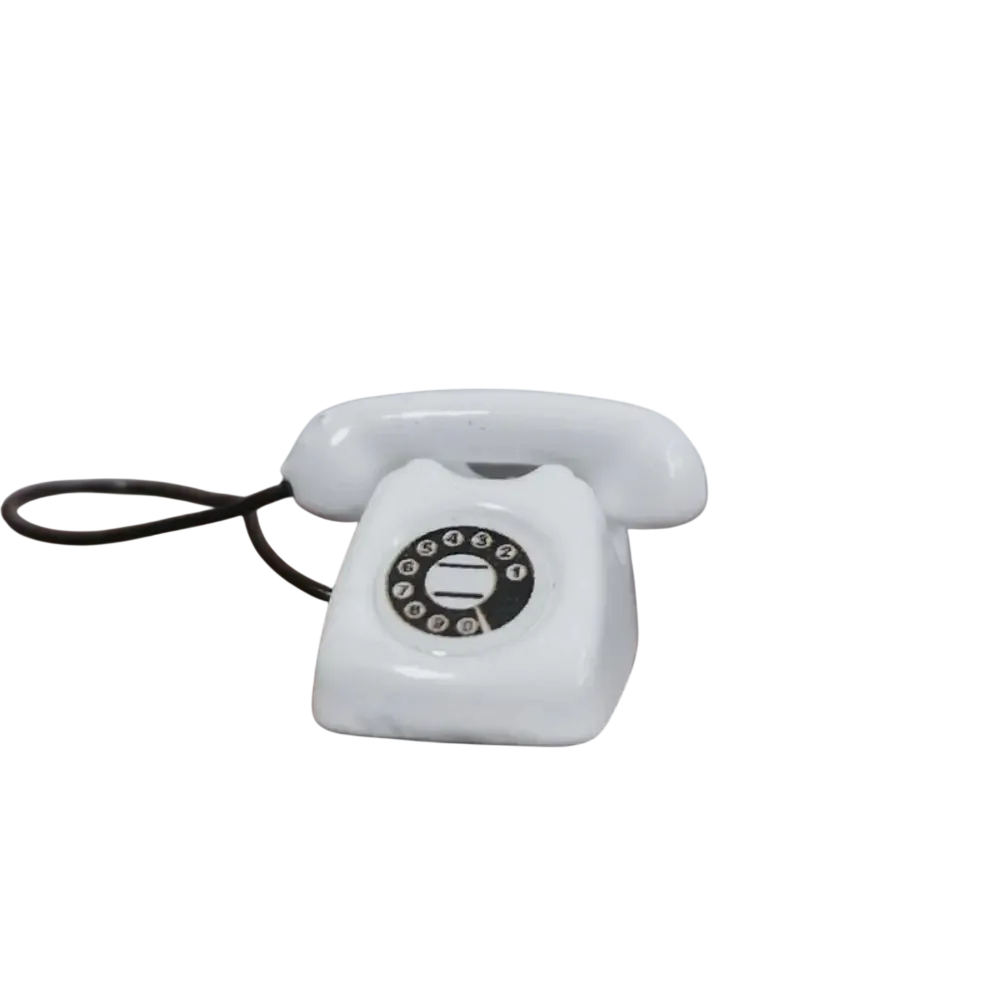 La decoración no requiere montaje ni instalación y está lista para su uso inmediato. El teléfono se utiliza exclusivamente como elemento decorativo y no es funcional. Debido al proceso de fabricación, pueden surgir pequeñas variaciones superficiales que no son defectos, sino una característica natural del producto. La decoración no está destinada a niños. El teléfono mini es el complemento perfecto para completar el aspecto realista de la casa de muñecas o mini escenas de colección.