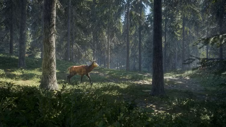 Muévete libremente a través de entornos cuidadosamente diseñados y explora diversas áreas y biomas, cada uno con su propia flora y fauna únicas. Experimenta la complejidad del comportamiento animal, eventos climáticos dinámicos, ciclos diurnos y nocturnos, balística simulada, acústica altamente realista y olores transportados por el viento.