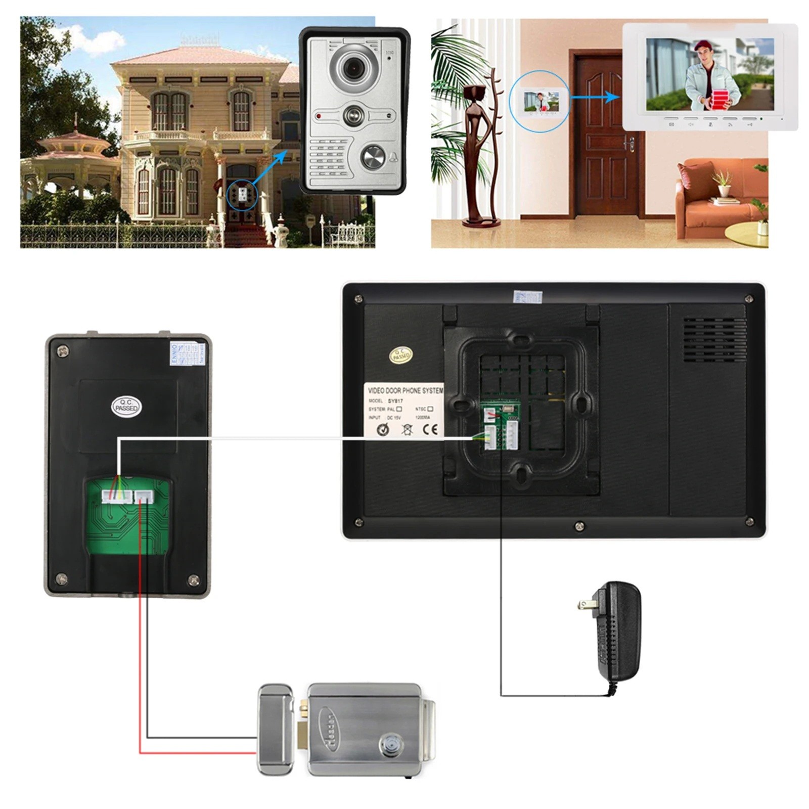 - Funciones: Conexión WiFi, intercomunicador visual, monitoreo en tiempo real, desbloqueo remoto, visión nocturna IR, llamada de audio bidireccional