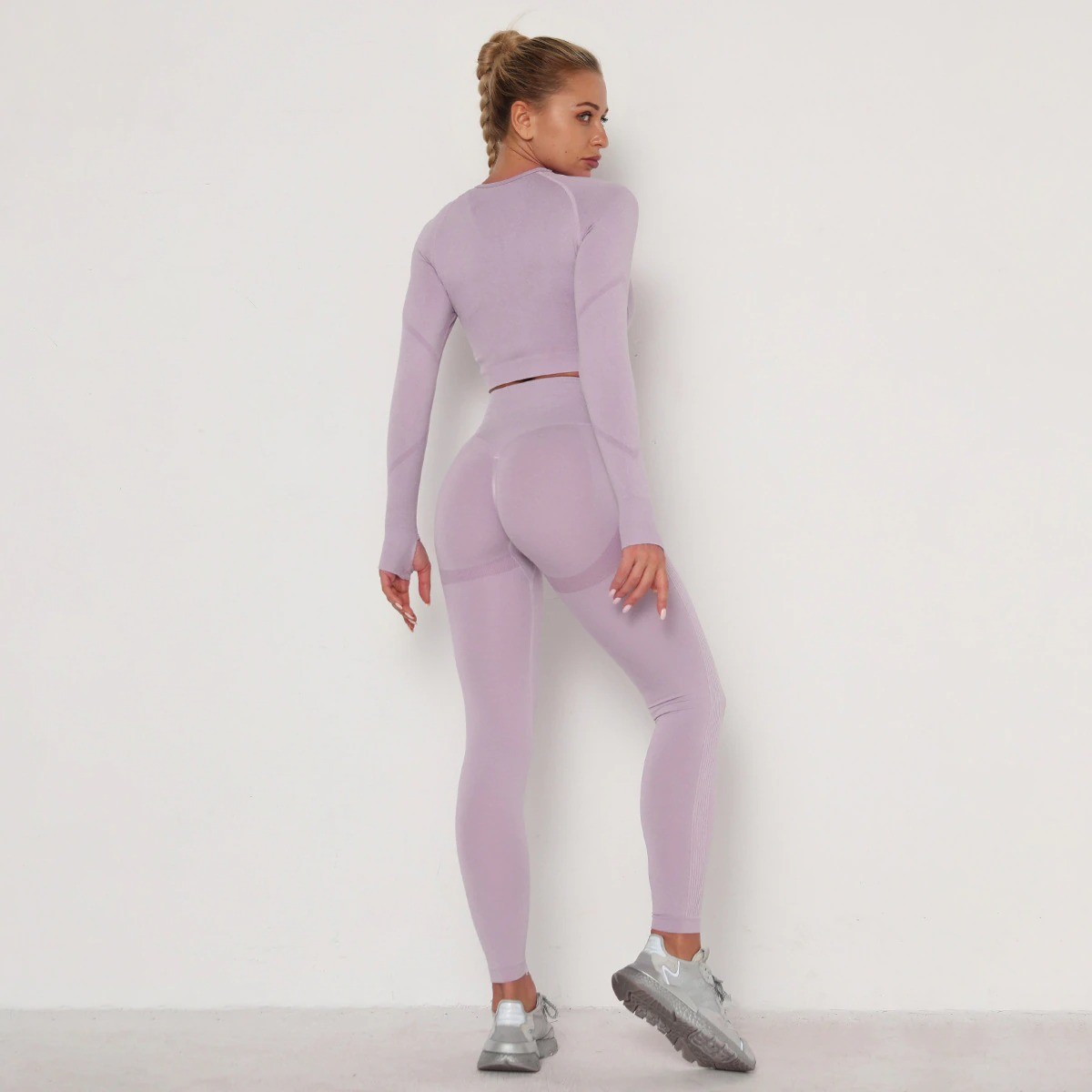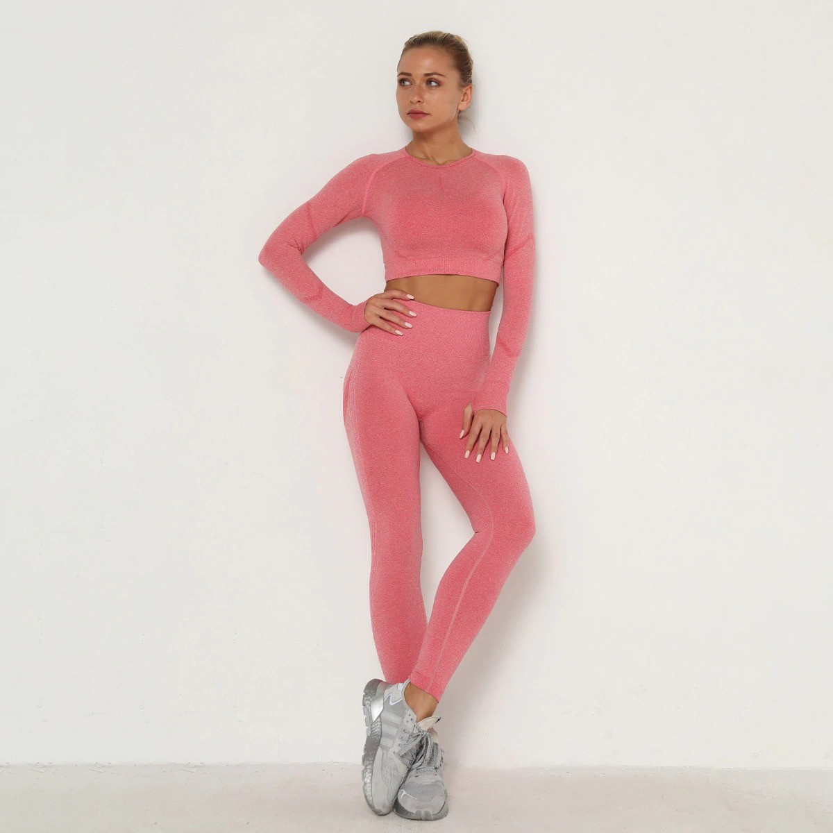 Top corto de manga larga y leggings para mujer