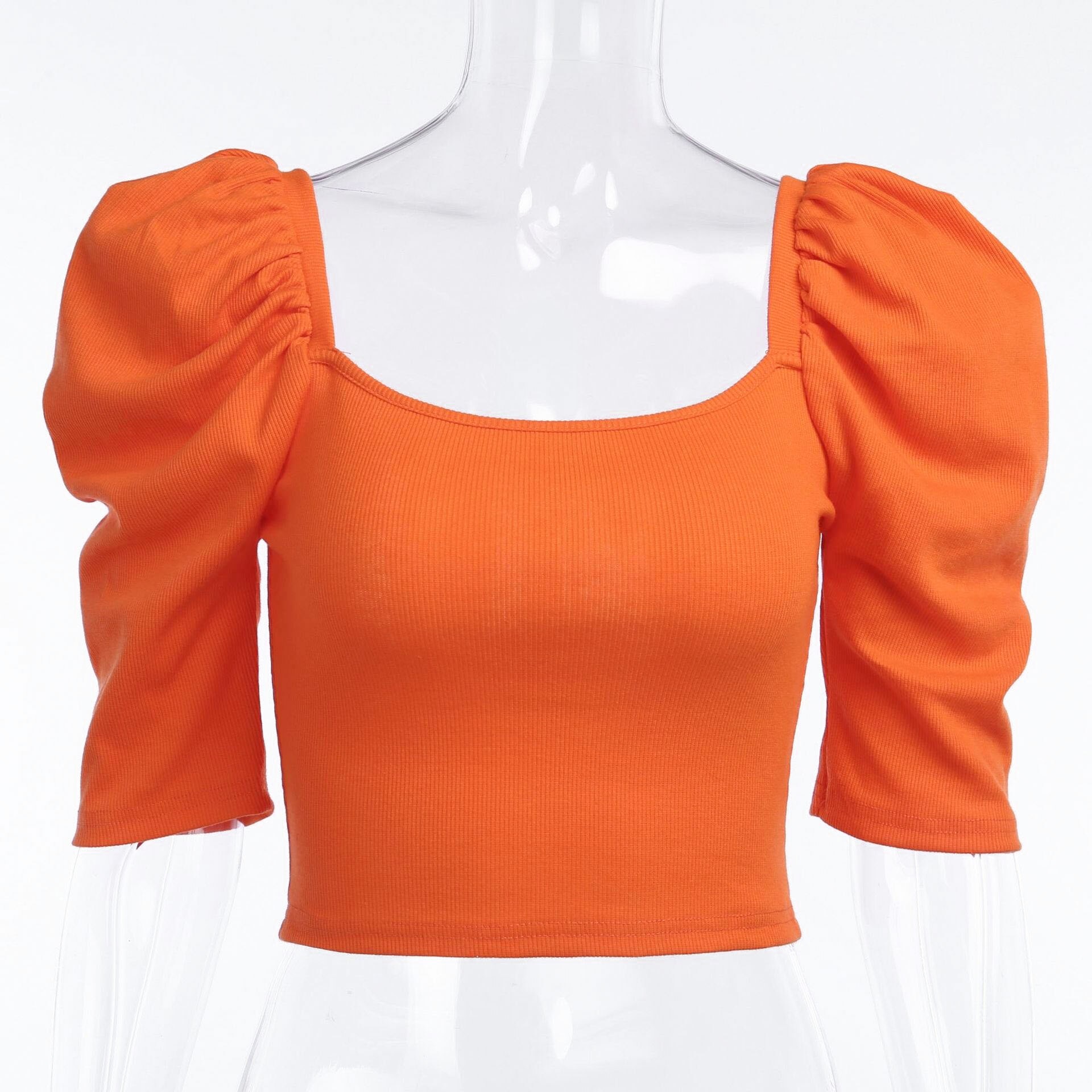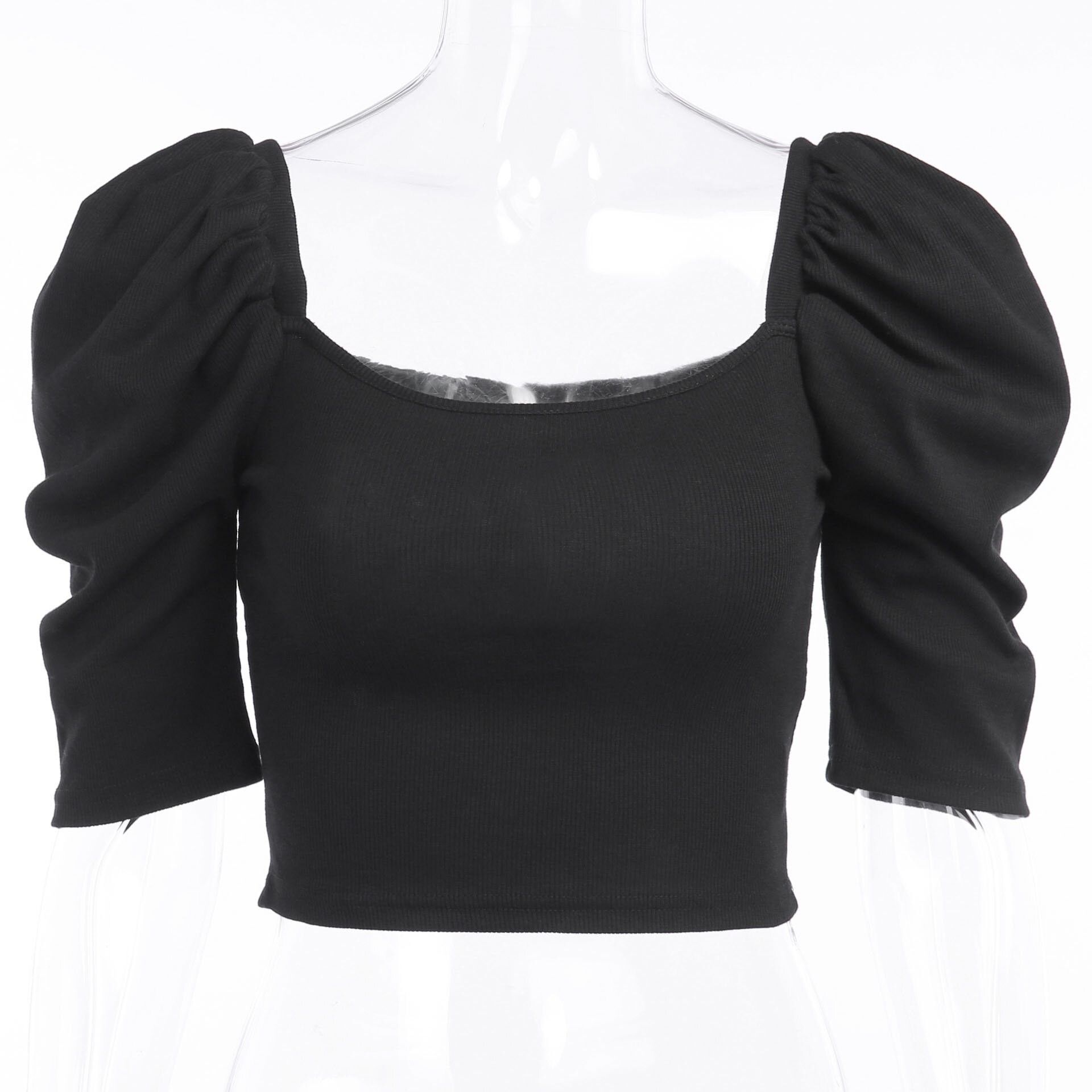 Top corto de mujer con hombros fruncidos A1043