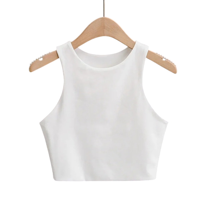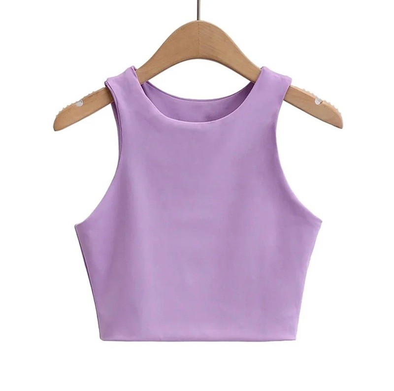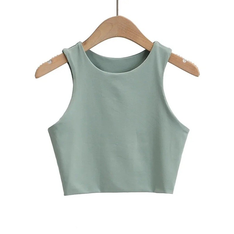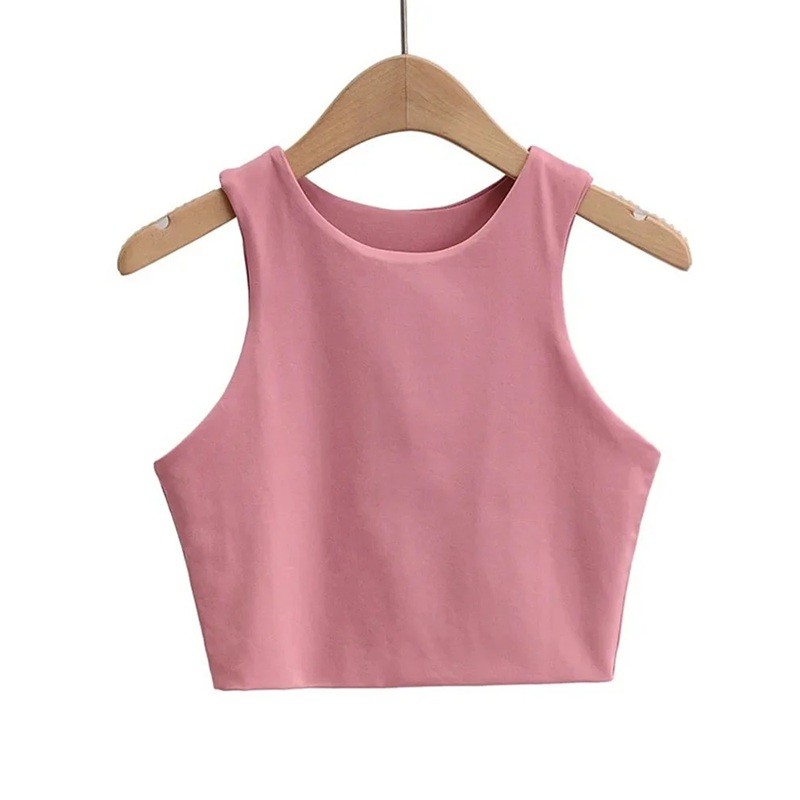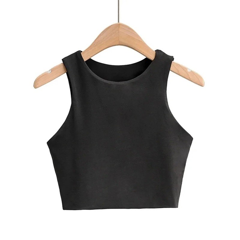 Top corto de mujer con tirantes anchos y escote en O, top corto de poliéster y spandex, corte elástico