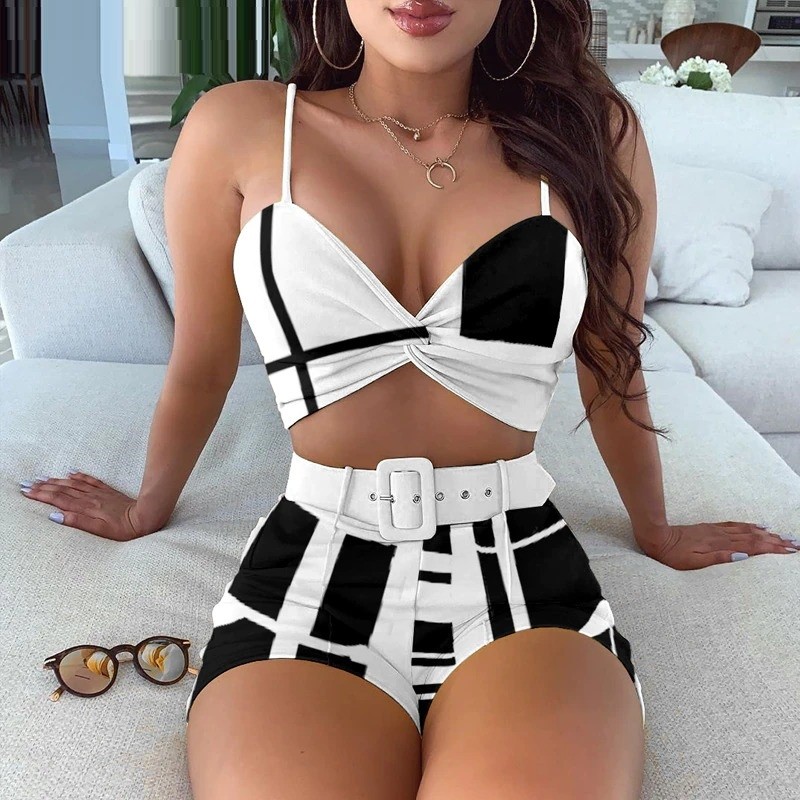 Top corto y shorts de mujer B1159