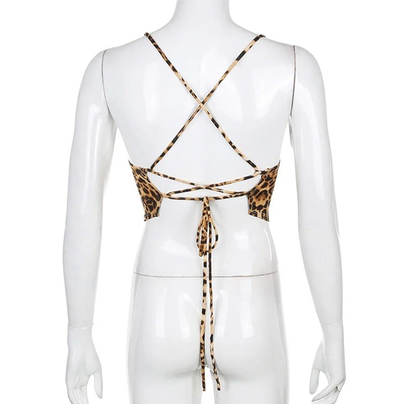 Top de mujer con estampado de leopardo Crop top Talla única Tirantes delgados Escote redondo Material poliéster spandex