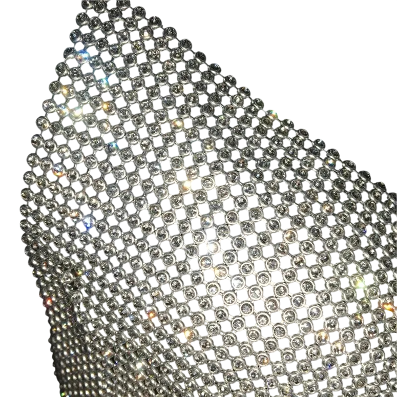 La estructura semitransparente combinada con las piedras escarchadas crea un efecto elegante adecuado para ocasiones nocturnas. El material es ligero, transpirable y se adapta a la forma del cuerpo sin limitar el movimiento. El top se puede usar solo o como una capa estilosa debajo de un blazer o cárdigan. El diseño de color sólido facilita la combinación con diferentes atuendos.