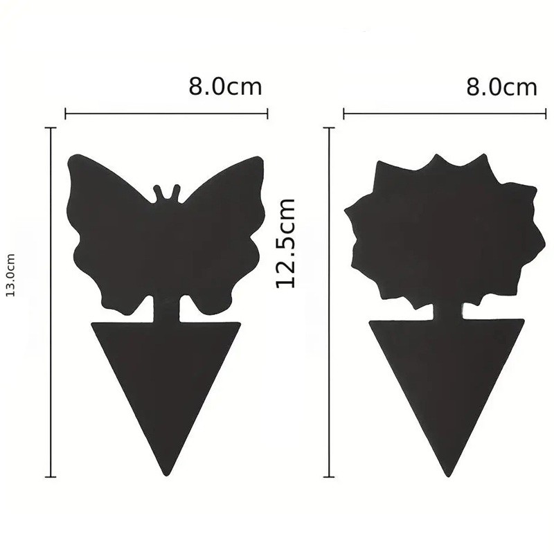 Las trampas están diseñadas en forma de mariposa y flor, lo que permite insertarlas fácilmente en la tierra cerca de plantas de interior o exteriores. La superficie adhesiva sirve para atrapar insectos al contacto con la trampa.