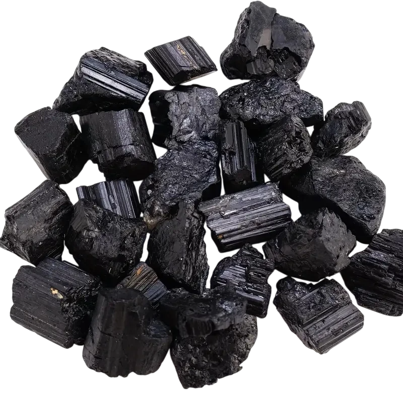 Piezas irregulares de turmalina negra adecuadas para la elaboración de joyas, rituales de protección, decoración y armonización del hogar y la energía. Descripción completa
