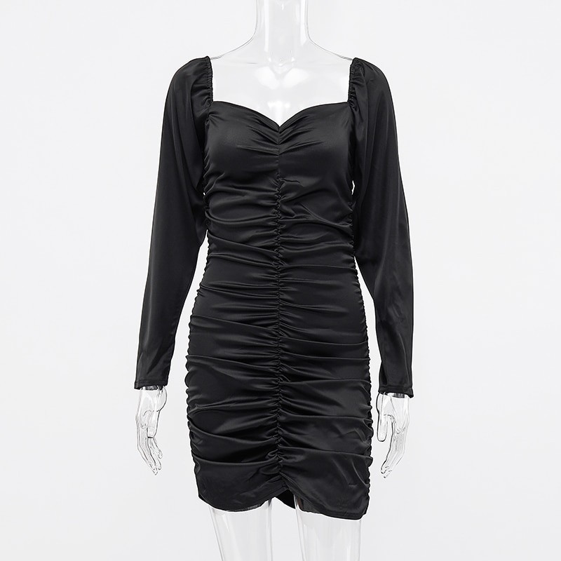 Mini vestido de lujo confeccionado en material suave y brillante con mangas anchas.