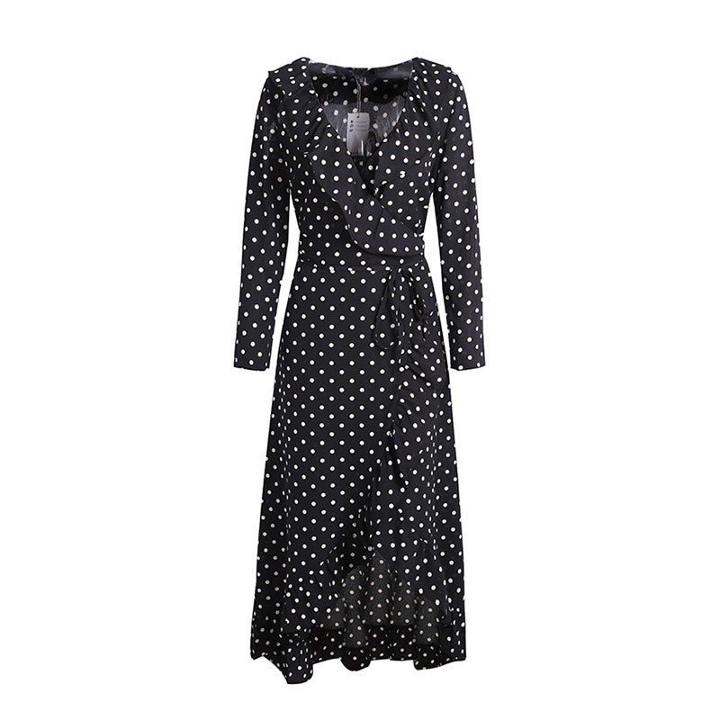 Vestido de lunares de manga larga - negro