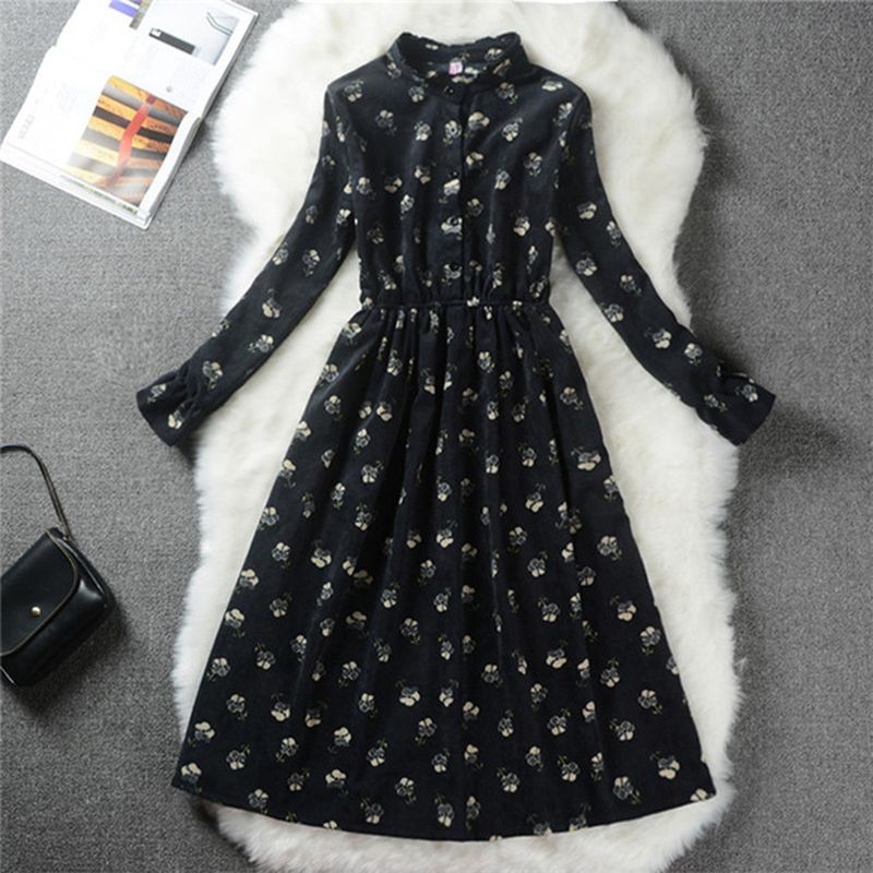 Precioso vestido de otoño con mangas largas y cuello alto.