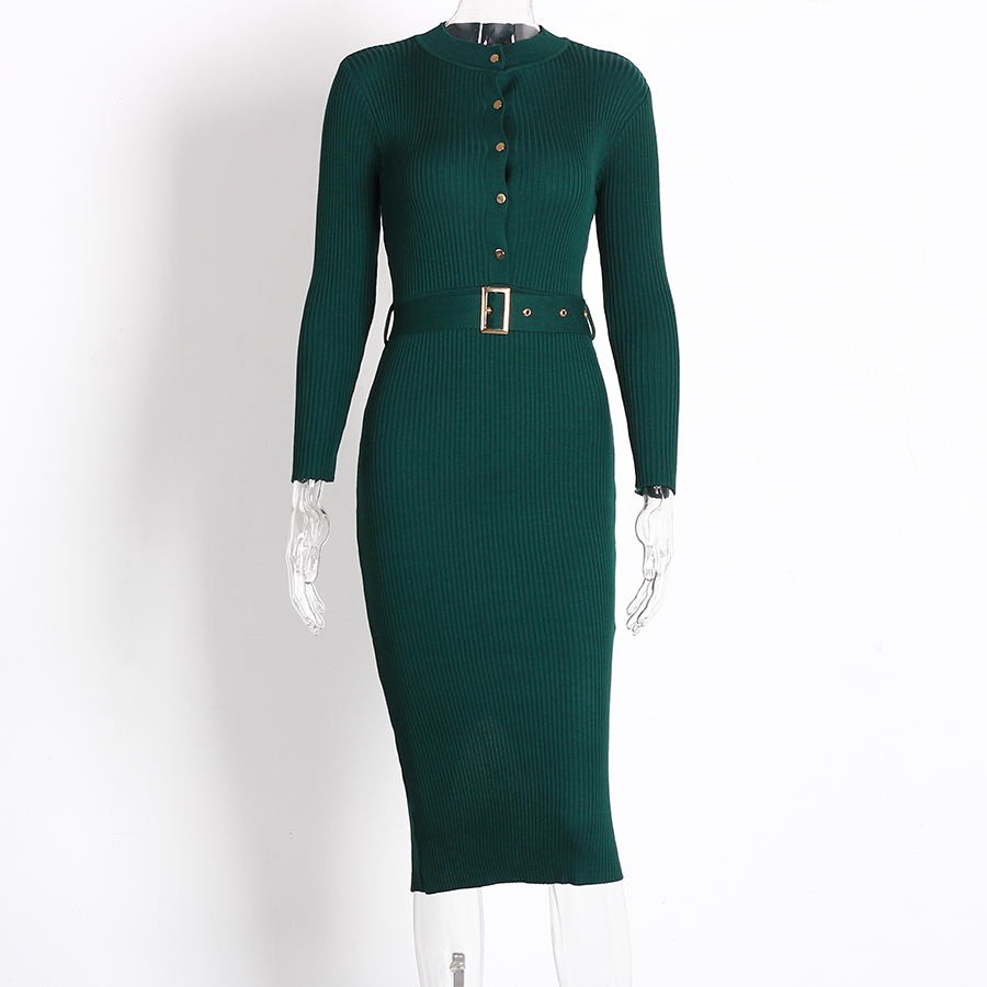 Vestido de punto para mujer con mangas largas y cinturón de moda.