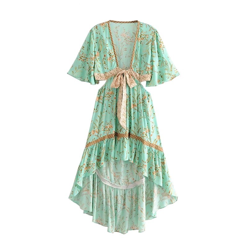 Precioso vestido de verano con un romántico estampado floral en estilo vintage.