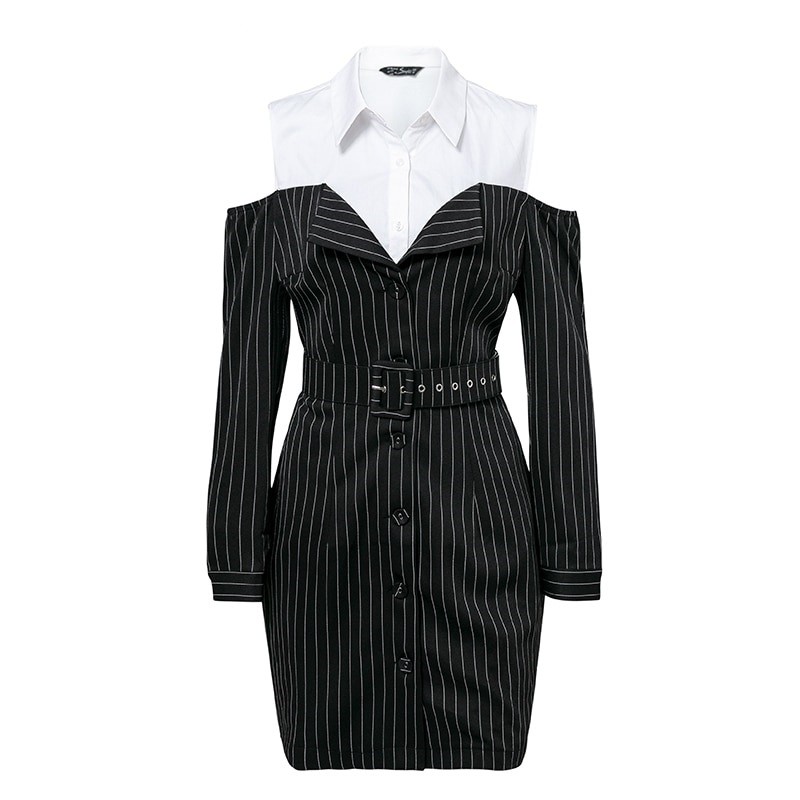 Elegante vestido de mujer con camisa falsa cosida.