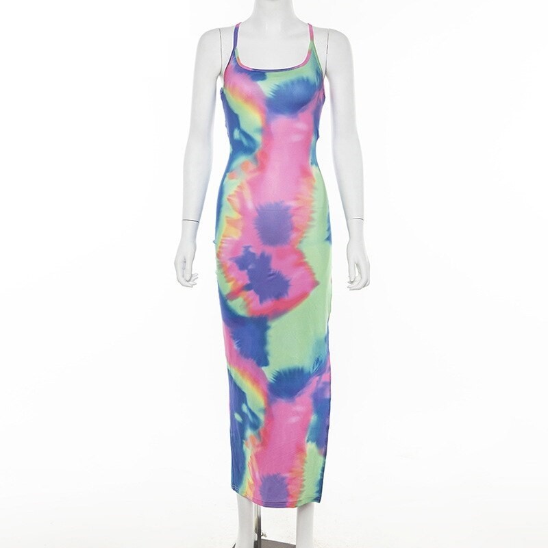 Hermoso vestido largo de verano en color arcoiris.